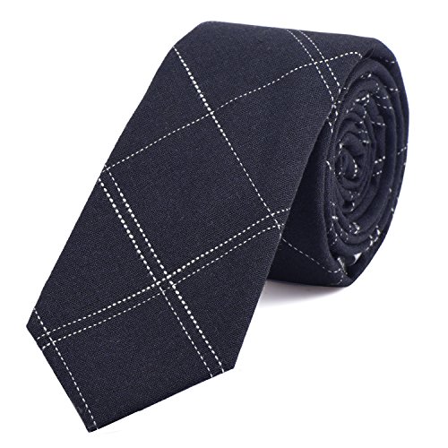 DonDon cravatta stretta a righe da uomo 6 cm cotone - blu notte rigato