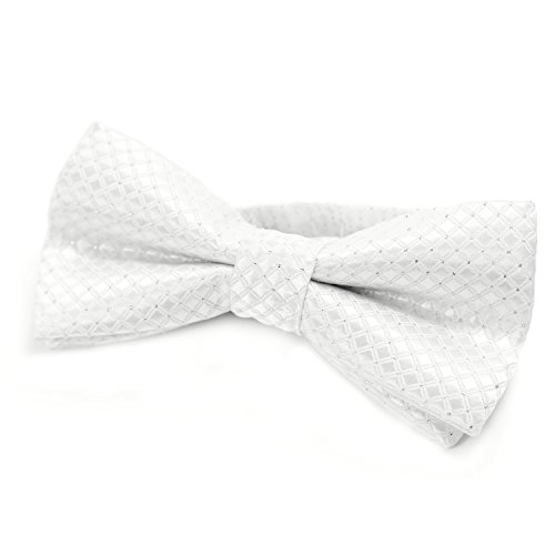 DonDon Papillon bambino e Ragazzo Ragazzi annodato e regolabile 9 x 4,5 cm bianco lucido con punti d'argento