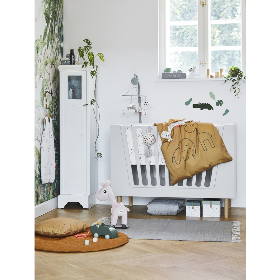 Raffi, su ruote, vi seguirà dappertutto. I colli lunghi sono per gli abbracci lunghi e Raffi, la giraffa, è amico morbidissimo e coccolone. I piedini magnetici di Raffi sono attaccati a magneti nascosti nelle ruote. Questi possono essere facilmente rimossi quando è il momento di un abbraccio. Raffi incoraggia i più piccoli a muovere i primi passi. Dettagli: Dimensioni Raffi: 30 x 43 x 18 cm Dimensioni con ruote: 14 x 19 cm Materiale: 100 % cotone Ruote materiale: ruote in plastica / plastica morbida Imbottitura: fibre di poliestere Attenzione: può essere pulito con un panno umido Età: da 12 mesi