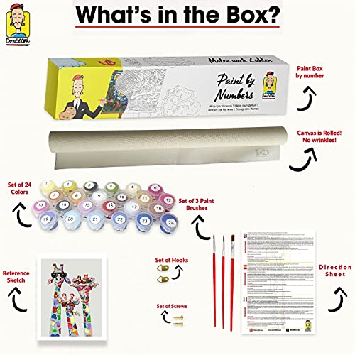 COSA È INCLUSO? Il set di pittura per numero include una tela di lino da 40 x 50 cm / 16 x 20 pollici senza cornice, 3 pennelli, 1 set di colori acrilici di alta qualità e 2 ganci e 2 viti per appendere