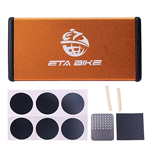 ❤Con scatola portaoggetti: con una comoda custodia in alluminio, il kit di toppe per pneumatici per bici è facile da riporre e trasportare. Tutti gli strumenti di manutenzione sono disponibili in questa piccola scatola.