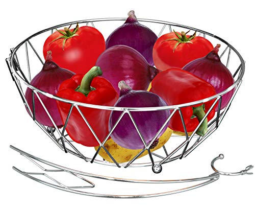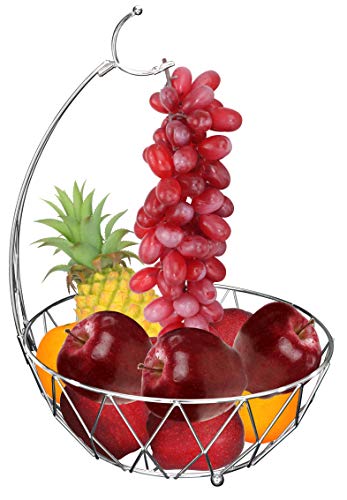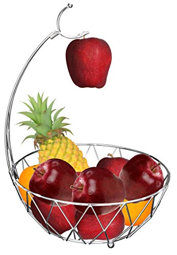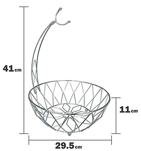 Dimensioni: 29,5 x 29,5 x 41 cm, cestino multiuso con gancio a banana rimovibile, facile da montare, questa ciotola in metallo starà bene su qualsiasi bancone della cucina o su qualsiasi tavolo da pranzo grazie al suo stile contemporaneo e alla finitura cromata