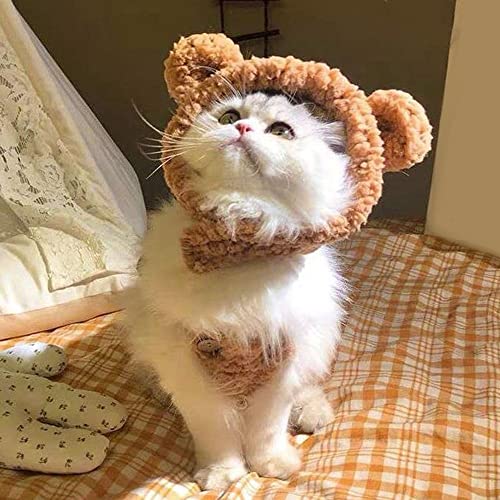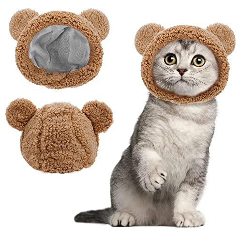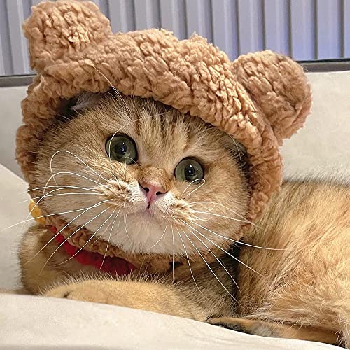 DONGKER Cappello per Gatti Simpatico,Cappelli da Orso per Gatto Regolabile Costume per Animali Piccolo con Orecchie per Cosplay di Halloween Festa