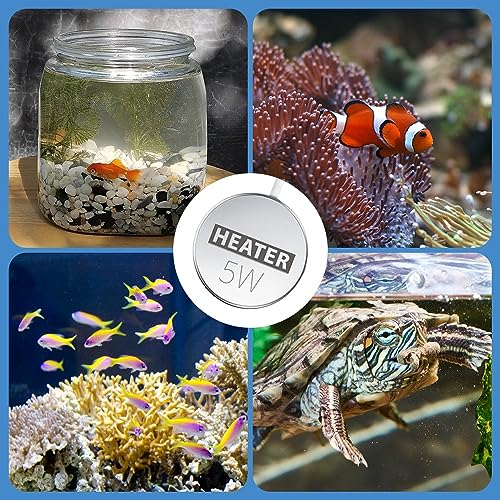 Ampia Gamma Di Usi: Il mini riscaldatore è compatto e può essere utilizzato per il riscaldamento automatico del distributore d'acqua da 2L-3L per animali domestici e gatti, mini acquario desktop per pesci d'acqua dolce e salata, terrari con basso livello dell'acqua.