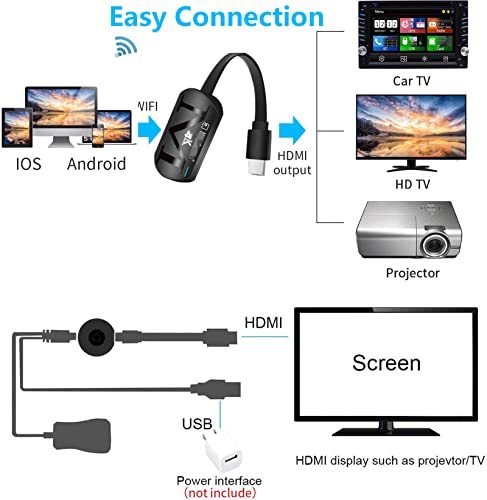 Dongle per Display Wireless, Ricevitore Portatile WiFi 4K con Schermo HDMI Compatibile con iPhone Mac iOS Android a TV Supporto Proiettore Mira-cast Airplay DLNA (2,4G)