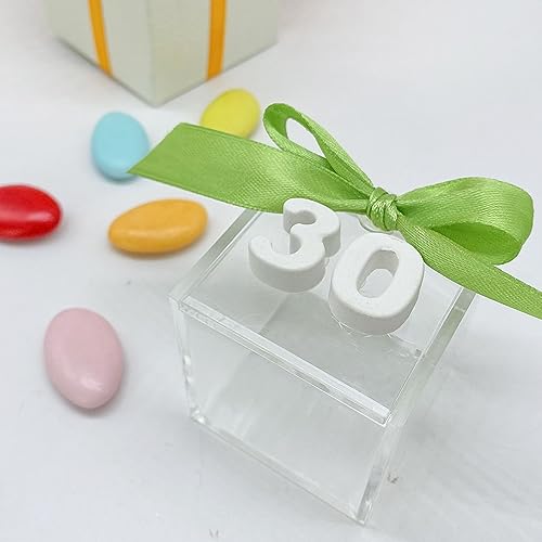 Doni Bomboniere Scatolina portaconfetti in plexiglass Trasparente 5x5x5 con gessetto Numero 30". Bomboniera confettata o segnaposto Compleanno 30 Anni, Anniversario di Matrimonio