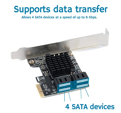 Donkey pc SATA III 4 porte Scheda adattatore SATA, 6 Gbps SATA Controller pci sata 4 porte. Staffa a basso profilo e 2 cavi SATA inclusi. Moltiplicatore SATA per slot PCe