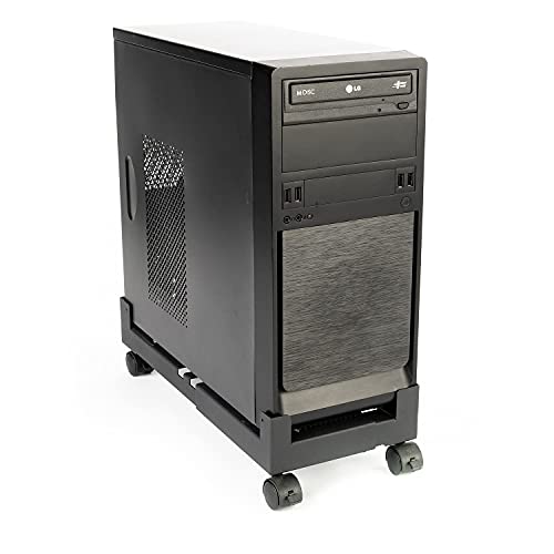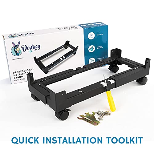 Donkey pc - Supporto CPU basso tavolo in acciaio regolabile di grandi dimensioni per computer desktop. Supporto per computer con ruote, 4 bloccabili e con rotazioni di 360° fino a 65 kg.