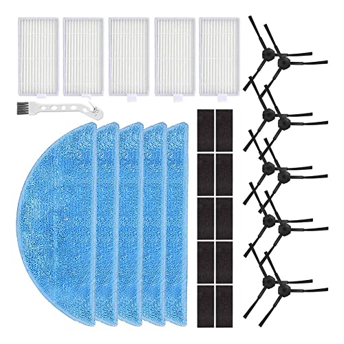 Donkivvy Parti di Ricambio HEPA Kit Spazzola Laterale per ILIFE Pro V5s V5 V3 V3s Aspirapolvere Robot, 10 Spazzole Laterali, 5 Filtri HEPA, 10 Cuscinetti, 5 Panni per Mocio, 1 Spazzola per la Pulizia