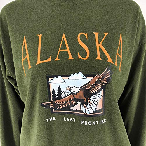 Donna Alaska Lettera Stampa Felpa Sciolto Casual Manica Lunga Hip Hop Alto Girocollo Cerniera Eagle Graphic Top Verde 2 L
