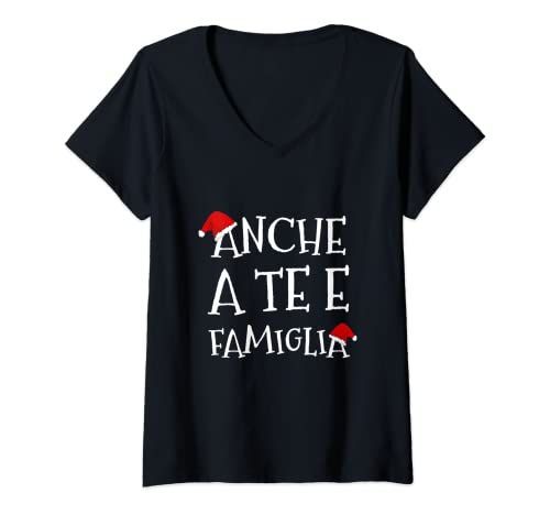 Donna Anche A Te e Famiglia Frase Divertente Ironica Sul Natale Maglietta con Collo a V