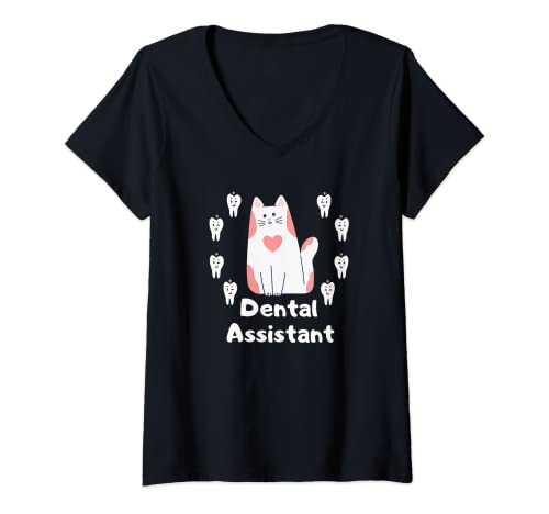 Donna Assistente dentale gatto Maglietta con Collo a V