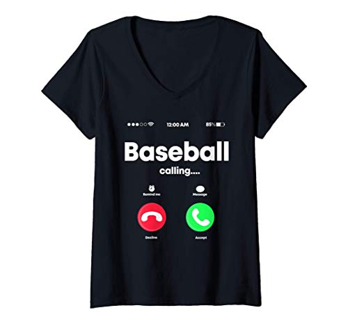 Donna Baseball Calling Phone Cool Softball USA Sports Player Gift Maglietta con Collo a V