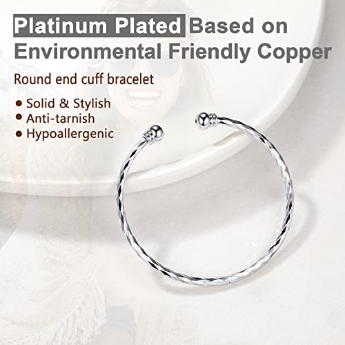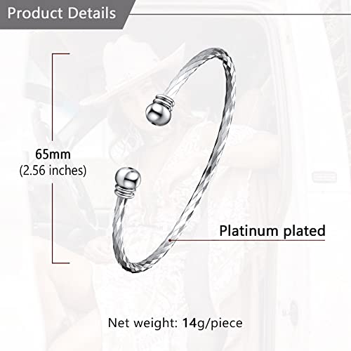 U7 Donna Bracciale Aperto Regolabile Semplice Sottile Faccia Come Diamante Placcato Platino Braccialetto Elegante Gioiello alla Moda con Confezione Regalo Anniversario per Ragazza - Argento
