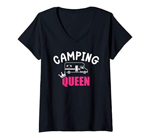 Donna Campeggio Queen Camper Maglietta con Collo a V
