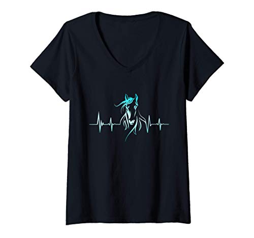 Donna Cavallo Regalo Elettrocardiogramma Cavallo Ragazza Donne Maglietta con Collo a V