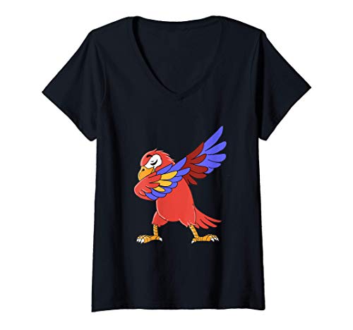 Donna Ara Dabbing pappagallo regalo per animali domestici Maglietta con Collo a V