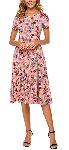 Donna Elegante Floreale Midi Vestito Maniche Corte Elastico Estate Abito (M, 12)