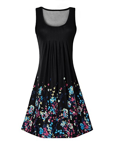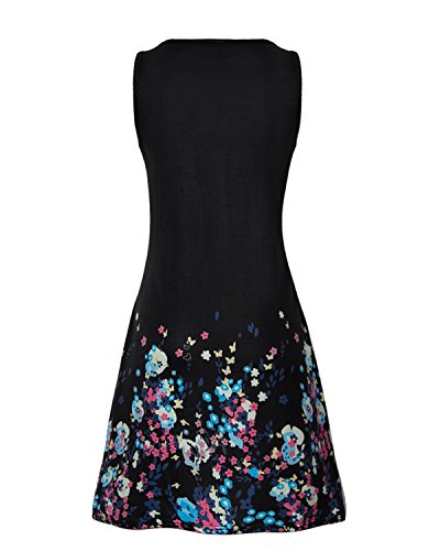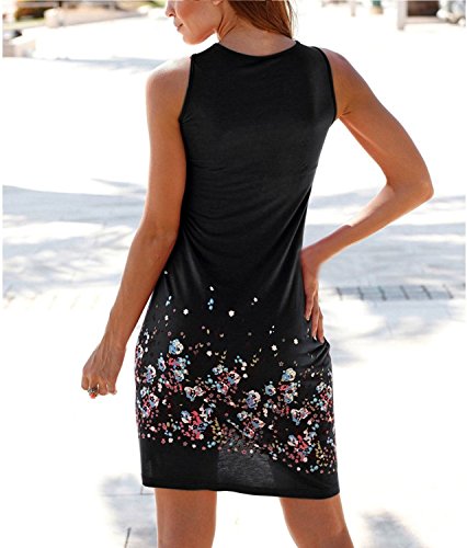 Donna Estate Vestito Largo Estate La Stampa al Ginocchio Equipaggio Maniche Scollatura Una Linea Vestito Spiaggia - di qualit¨¤ Superiore XL Nero