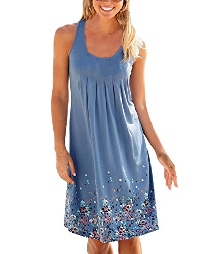 Donna Estate Vestito Largo Estate La Stampa al Ginocchio Equipaggio Maniche Scollatura Una Linea Vestito Spiaggia - di qualit¨¤ Superiore L Blu