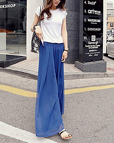Donna Estivi Loose Gamba Larga Pantaloni Chiffon Confortevole Larghi Di Vita Traspirante Vita Alta Casual Palazzo Pantaloni