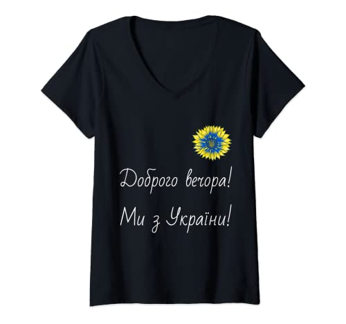 Buonasera! Siamo dall'Ucraina! - Maglietta con girasole con bandiera ucraina, abbigliamento patriottico ucraino per uomini, donne, bambini, tua mamma, papà, sorella, fratello, marito, moglie, ucraini, amici amorevoli l'Ucraina, che vogliono stare in piedi con l'Ucraina e sostenere il popolo ucraino