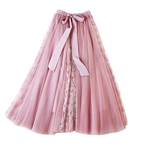Donna Gonna Lunga di Tulle Elastico in Vita Stile Elegante Solida Colore Petticoat per Il Partito di Prom,Decorazione ad Arco Comodo e Traspirante Pink Taglia Unica