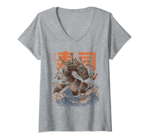 Donna Great Sushi Dragon Cibo Giapponese Kawaii Dragon Anime Sushi Maglietta con Collo a V