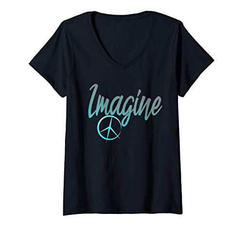 Donna Imagine Pace Sign Hippie World Peace Hop Maglietta con Collo a V