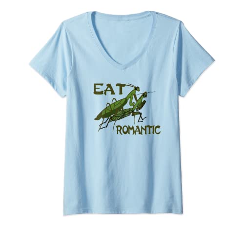 Donna Insetto pregare mantide mangiare insetti romantici mantide animali domestici Maglietta con Collo a V