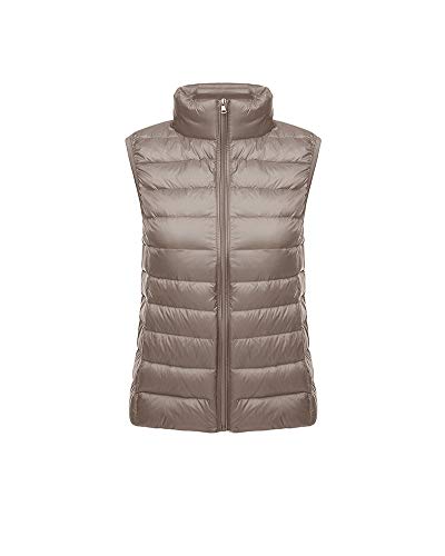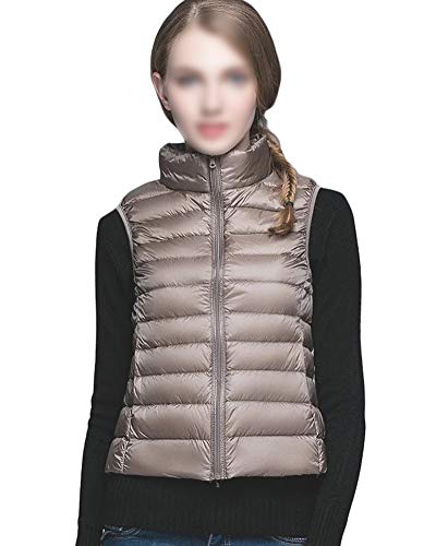 Donna Inverno Gilet Ultraleggeri Caldo Corto Gilet di Piumino, Piumino Senza Maniche Leggero Giacche Trapuntato Giubbotto Giù Zipper Gilet Sottile Down Vest Dritto Collare,Impermeabile Cachi XXL
