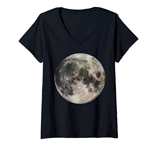 Donna Luna piena fase spazio amore fotografia astronomia Maglietta con Collo a V