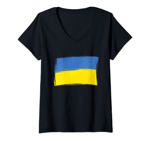 Donna Maglietta con bandiera ucraina I Stand con Ucraina Support Love Maglietta con Collo a V