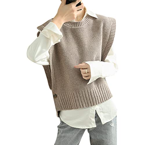 Donna Maglione Gilet,Maglioni Senza Maniche In Cashmere Da Donna Gilet In Maglia Con Spacco Laterale Cammello Gilet In Maglia Da Donna Casual Invernale Gilet Da Donna Senza Maniche In Maglione Senza