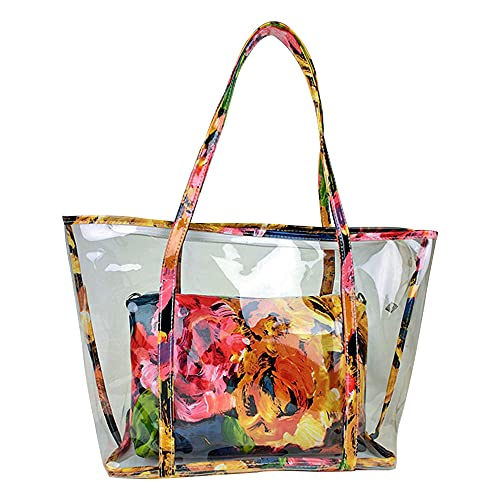 Donna Moda Pvc Spiaggia Borse - Riutilizzabili Donna Da Mare Tracolla Elegante E Moda Design Motivi Geometrici Ragazza Grande Desigual Borsa Manico Superiore 2 Pezzi Borse a Spalla (A)