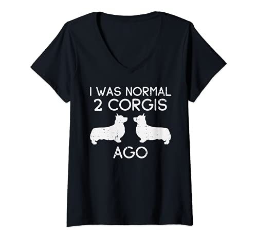 Donna Normal 2 Welsh Corgis Ago Funny Pet Dog Lover Owner Gift Maglietta con Collo a V