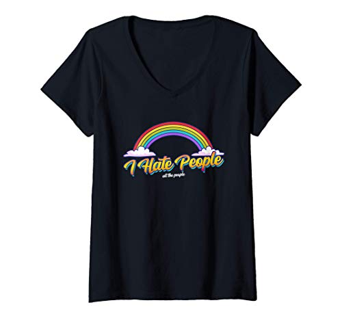 Donna Odio le persone, tutte le persone. Arcobaleno Maglietta con Collo a V