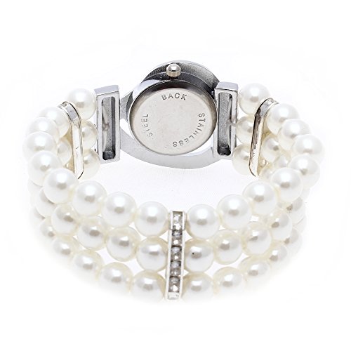 Donna Orologio Bracciale Cinturino Elastico Perle Sintetiche Cassa Cuore Strass