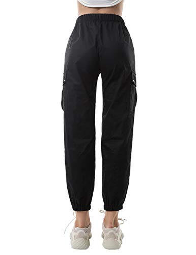 Donna Pantaloni Basic Casual con 4 Tasche Cargo Pantalone da Lavoro Moda Baggy Hip Hop per Trekking Joggers Sportivo Yoga (XL, Nero)