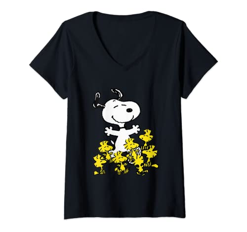 Donna Peanuts Snoopy pulcino partito Maglietta con Collo a V