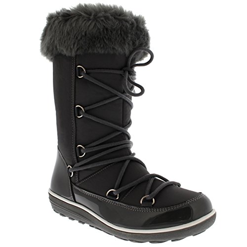 Donna Pelliccia Ecologica Termico Caldo Inverno La Neve Pioggia Impermeabile Alti Ginocchio Stivali - Grigio Nylon - UK8/EU41 - YC0478