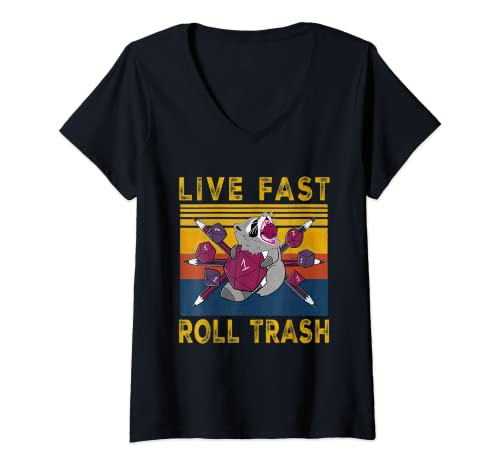 Donna Raccoon Vintage Live-Fast Roll Trash Uomini Donne Maglietta con Collo a V