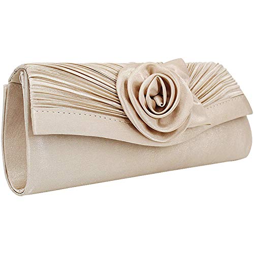 Donna Raso Pieghe Fiore Sera Pochette Pochette Pochette Rosa Floreale Pieghe Raso Pochette Da Sera Pochette Di Raso Pieghe Fiore Pochette Da, Albicocca, Taglia unica, Borsa Messenger