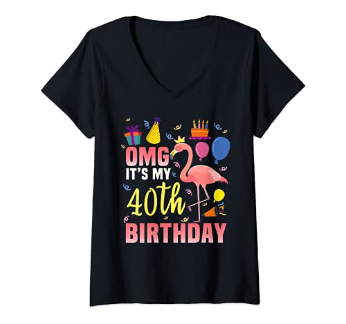 Donna Regalo per 40 anni, per donne e uomini, fenicottero è il mio 40° compleanno Maglietta con Collo a V