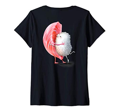 Donna Romantico Tonno Sushi Abbraccio e Bacio Maglietta con Collo a V