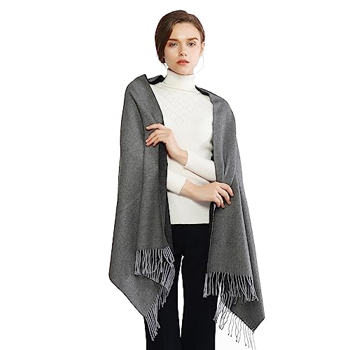 Donna Sciarpa Scialle Pashmina Invernale Elegante Lungo Morbida Rversibili Stole Avvolgere Grigio e nero