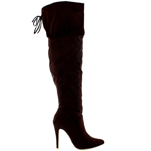 Donna Stiletto Coscia Alta Piattaforma Arco Serata Tacchi Alti Stivali
