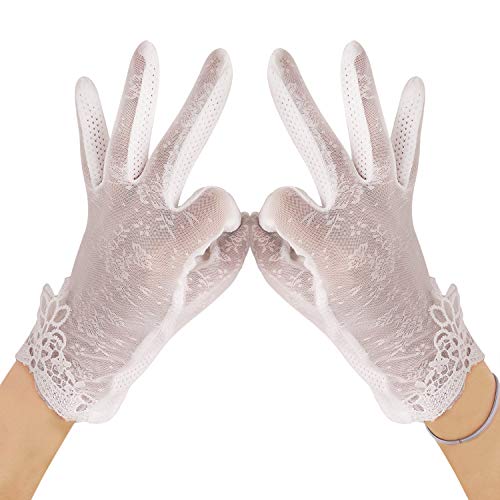 Donna Sunblock Protezione UV Mesh Pizzo Guida Guanti Estivi Brevi Floreale Antiscivolo Screentouch Guanti Elegante Matrimonio Sposa Full Finger Guanti Sunblock Outdoor Ciclismo Guanti Bianco