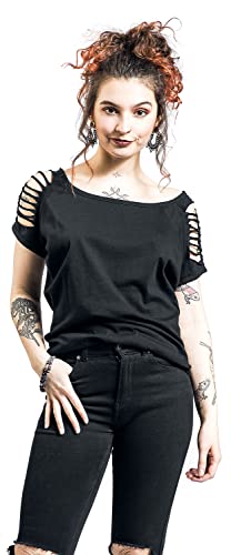 RED by EMP Donna T-Shirt Nera con Ritagli sulle Maniche S