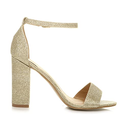 Donna Tacco Alto Blocco Fibbia Punta Aperta Sandali con Cinturino Numero 3 36